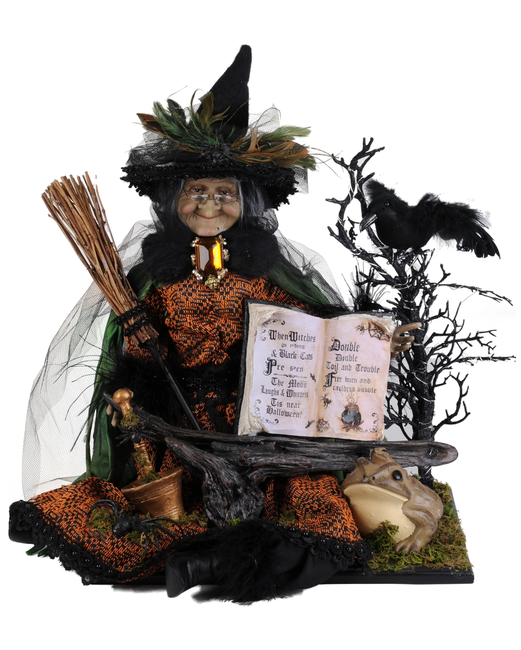 Beleuchtete Geisterhexe Mit Kröte & Zauberbuch 50cm