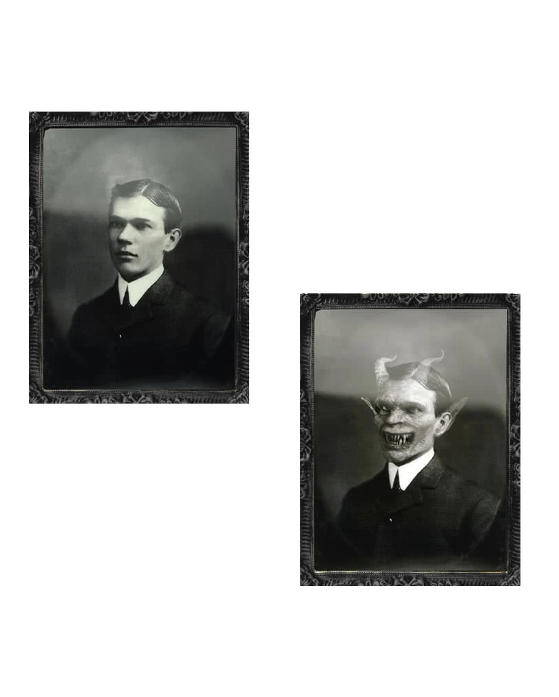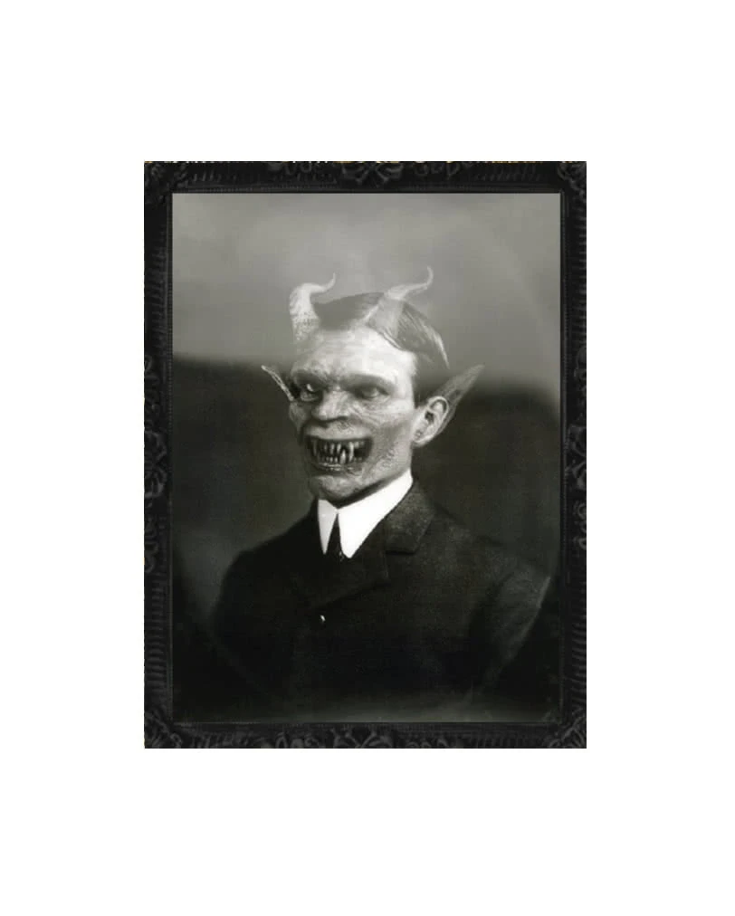 Der Junge Mann mit Mantel und Krawatte verwandelt sich je nach Blickwinkel in einen besessen Dämon mit spitzen Ohren und Hörnern. Diese optische Täuschung verdankt das Wackelbild dem typischen Wackelbild Effektes. Zudem wirkt das Bild besonders schön an der Wand durch den mit Schnörkeln verzierten Rahmen.