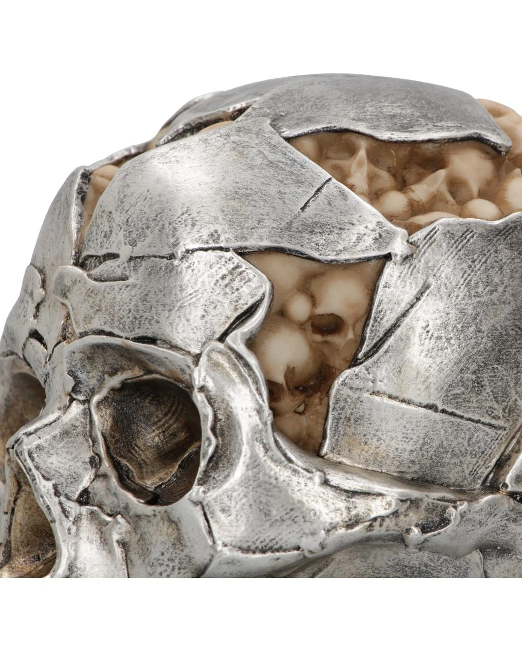Silberner Totenkopf mit beigen, kleinen Schädeln als Einschlüsse