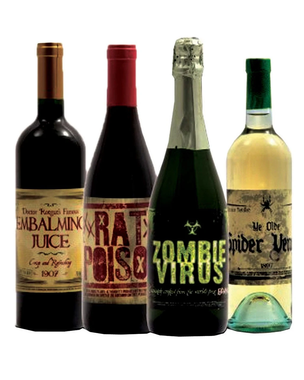 Die selbstklebenden Halloween Flaschen Sticker werden im 8er Pack geliefert, sodass genug für alle Getränke da ist. Das antike Aussehen der Horror Etiketten unterstreicht deren Verwendung als Halloween Buffet Deko. Es gibt acht verschiedene Designs: Elixiere, Giftmischungen, Blut und vieles mehr gibt es für alle Hexen, Vampire, Zombies und andere Monster. Weitere Hilfsmittel für eure Halloween Drinks sind der Magnetischer Totenschädel Flaschenöffner und der Weinflaschenverschluss mit Totenschädel.