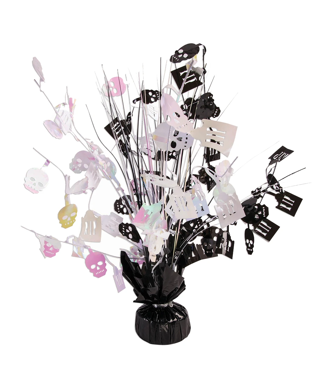 Was gibt es schöneres, als eine gruselig geschmückte Halloween Party? Unsere Totenschädel Dekoration kommt in Form einer Halloween Fontäne mit Totenkopf Motiven. Sie kann entweder als festliche Skull Tischdekoration oder als Beschwerung für Helium Ballons genutzt werden. Sichere dir das einzigartige Halloween Ballon Gewicht mit Totenschädel Fontäne 38 cm und dekoriere deine Location wie ein echter Profi!