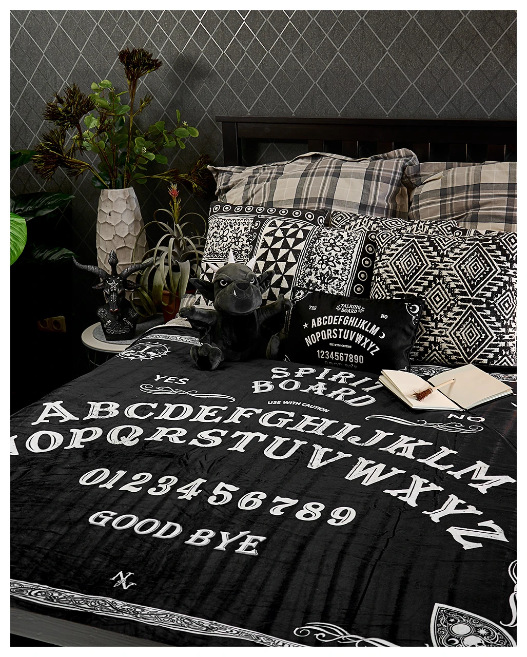Weiche Decke mit Ouija Brett Motiv als dekorativer Halloween Überwurf