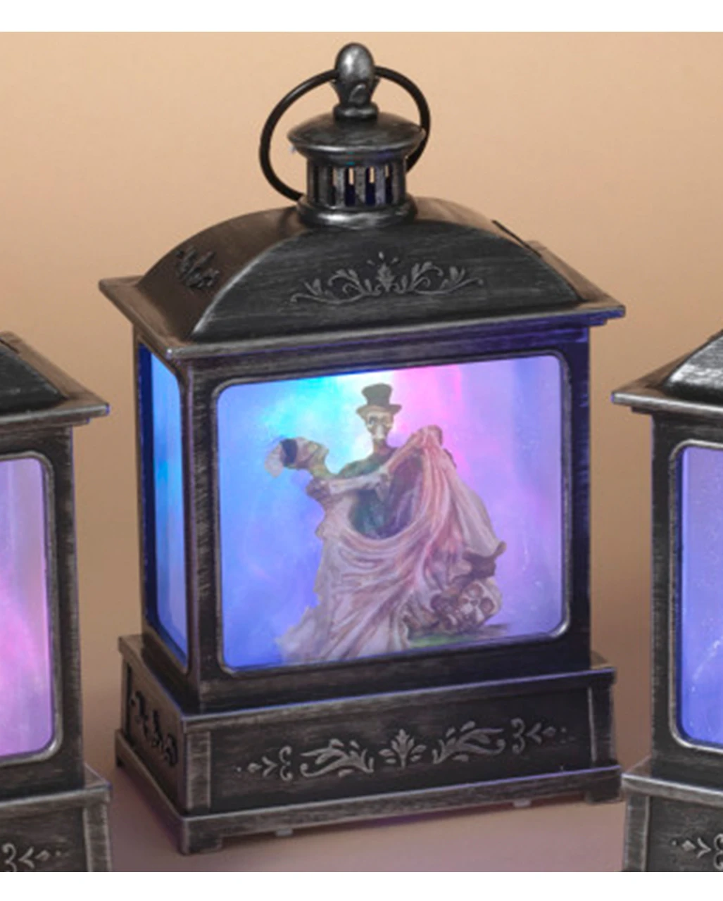 Edle Laterne mit tanzendem Skelett Paar als Halloween Geschenkartikel kaufen