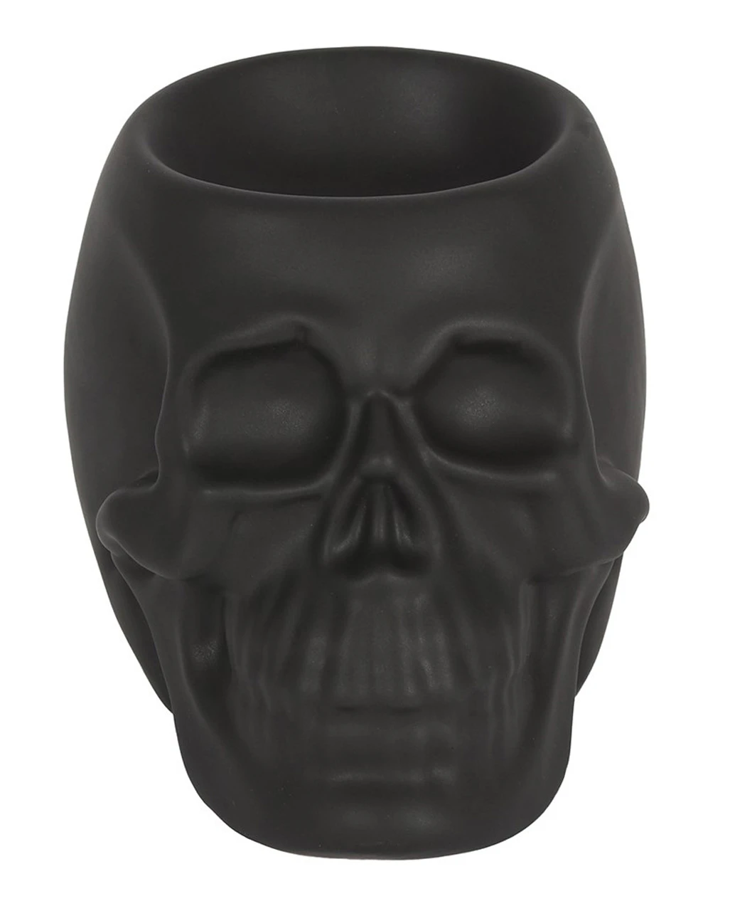 Dekoriere dein Gothic-Reich mit okkulten Elementen und mystischen Figuren. Unser schwarzer Totenschädel Duftöl Teelichthalter ist eine düstere Totenkopf Schale, die als Halter für ätherische Öle und Duftwachs dient. Die Rückseite verfügt über eine Auslassung, in die du ein Teelicht hineinstellen kannst – ideal für Gothics und Wicca-Fans!