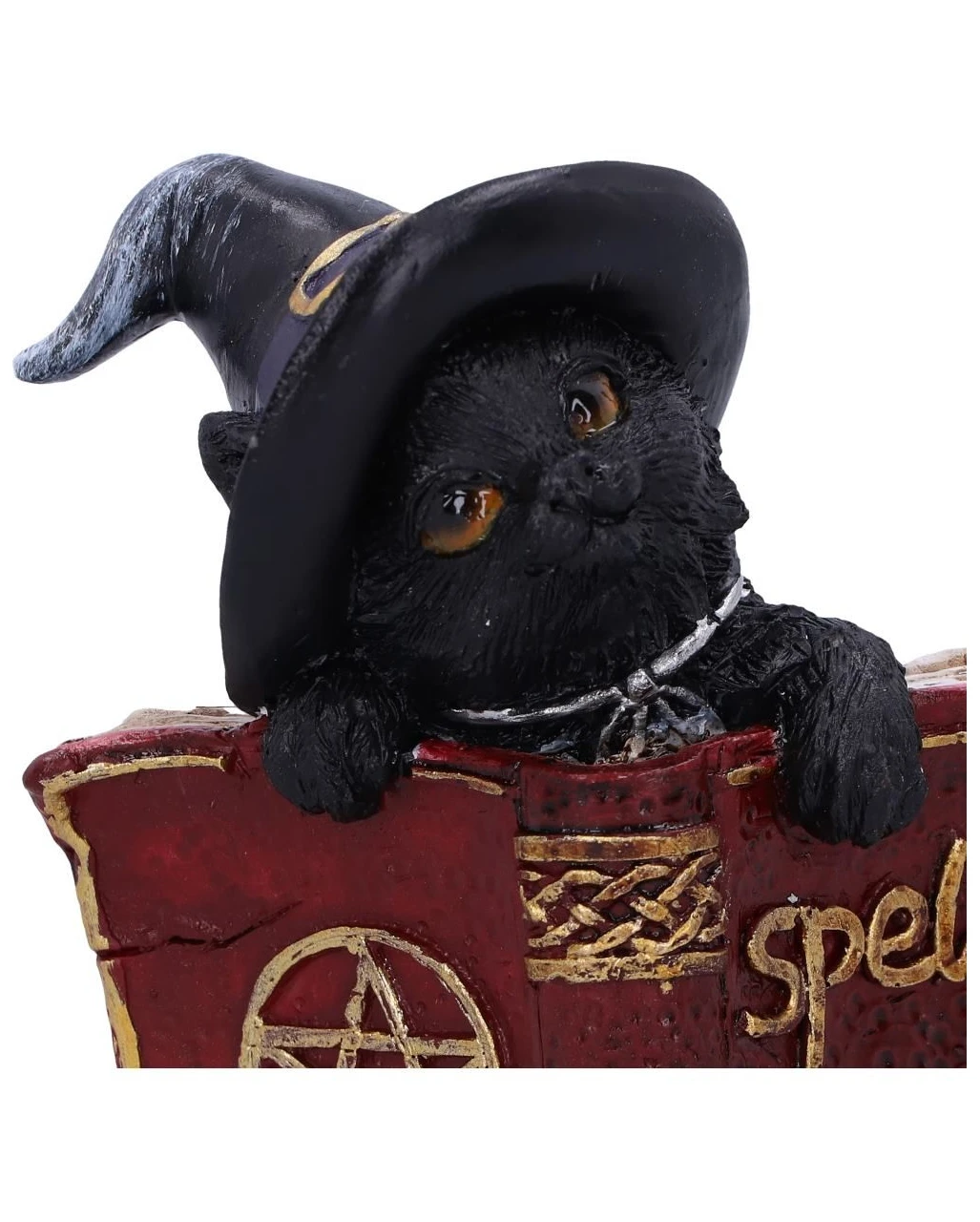 Schwarzes Hexenkätzchen mit rotem Zauberbuch 8,2cm