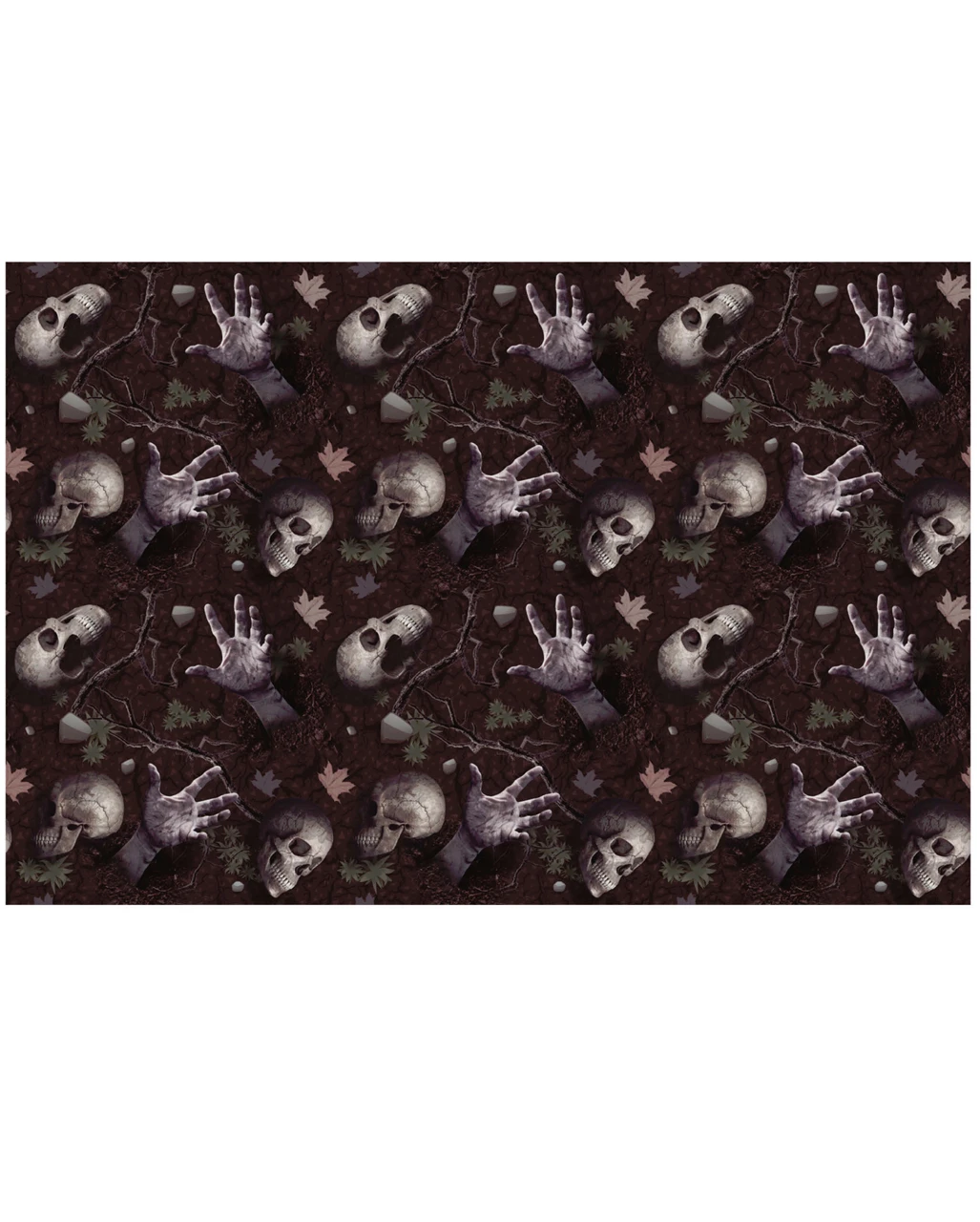 - Dunkle Tischdecke mit Totenköpfen, Leichenteilen, Ästen & Blättern