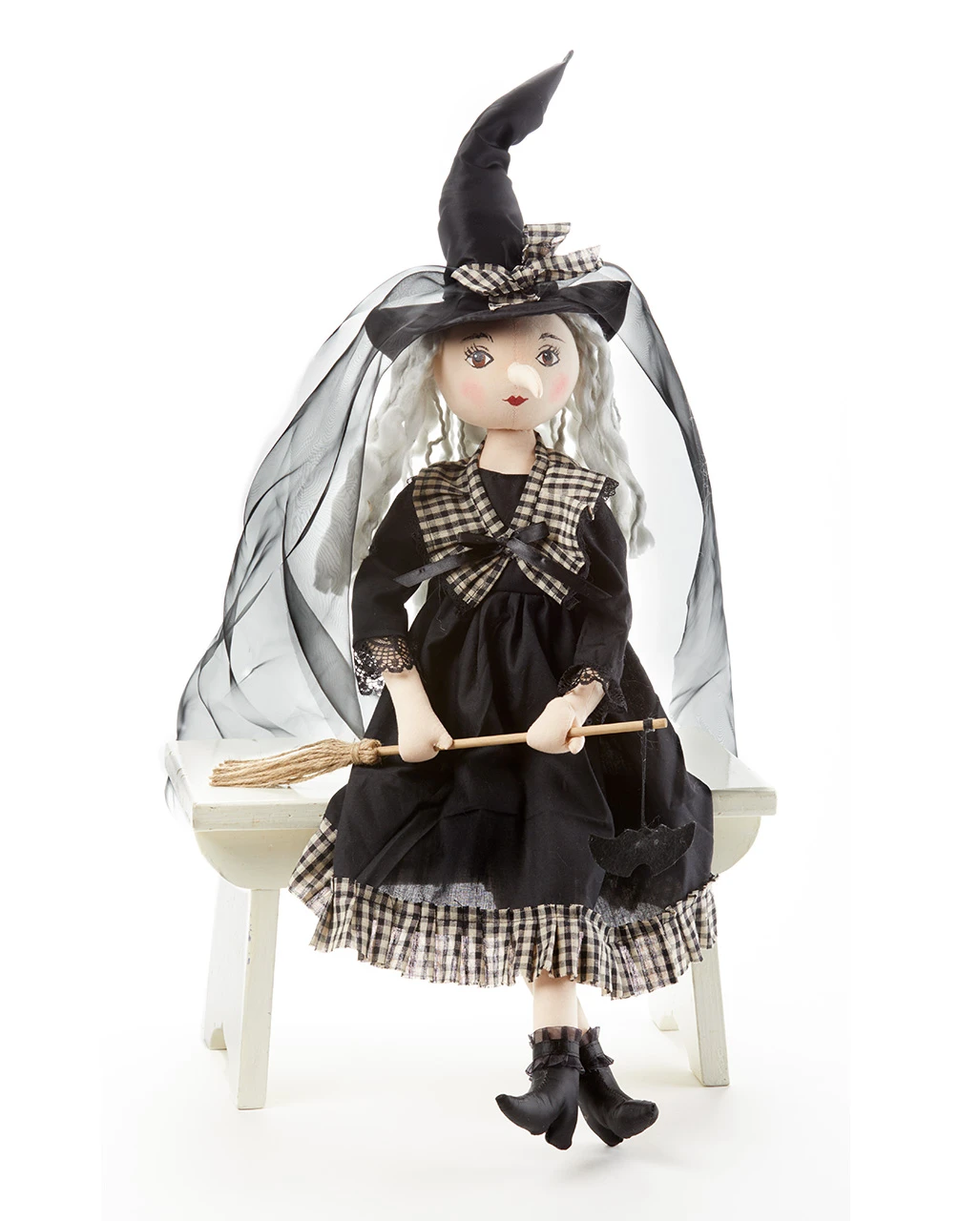 Vintage Hexenfigur Mit Besen & Hut 60 Cm