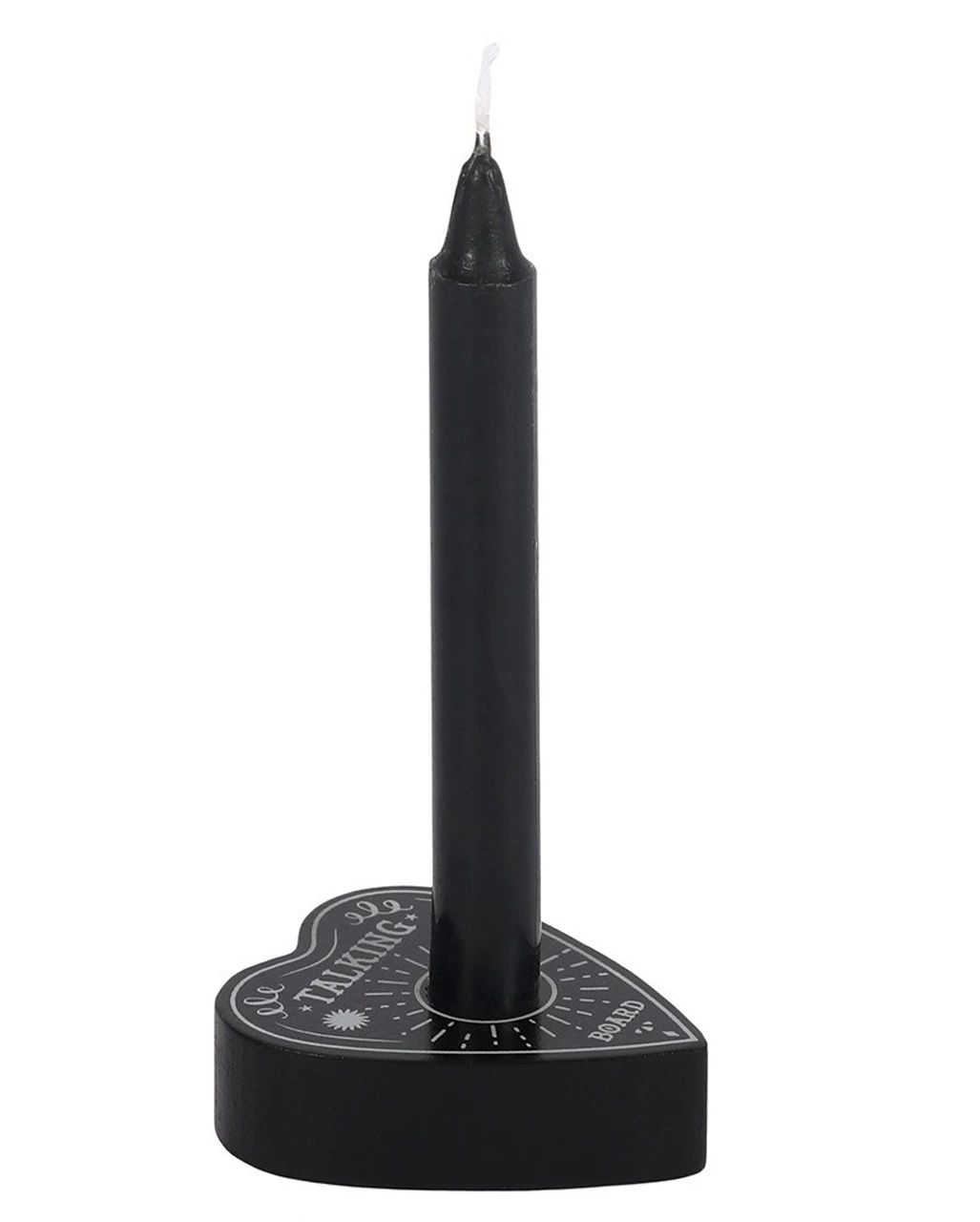 Dieser dekorative Kerzenhalter im Ouija-Look besticht durch okkulte Eleganz. Der Kerzenständer in Ouija Planchetten-Form ist perfekt für alle, die einen alternativen Lifestyle pflegen und das auch in ihrer Wohndekoration zum Ausdruck bringen wollen. Der Gothic Kerzenhalter passt für eine einzelne Zauberkerze und machts ich auch super als Geschenkidee.